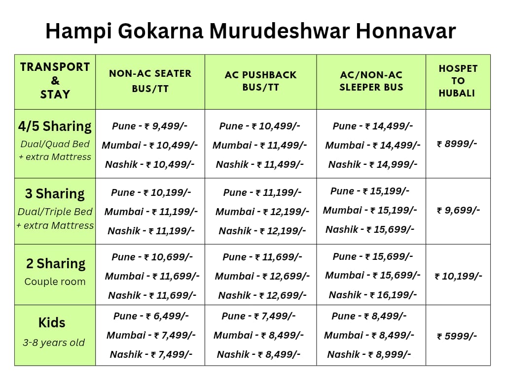 - Travel by Private Non-AC Seater Bus/Sleeper bus as per your booking.